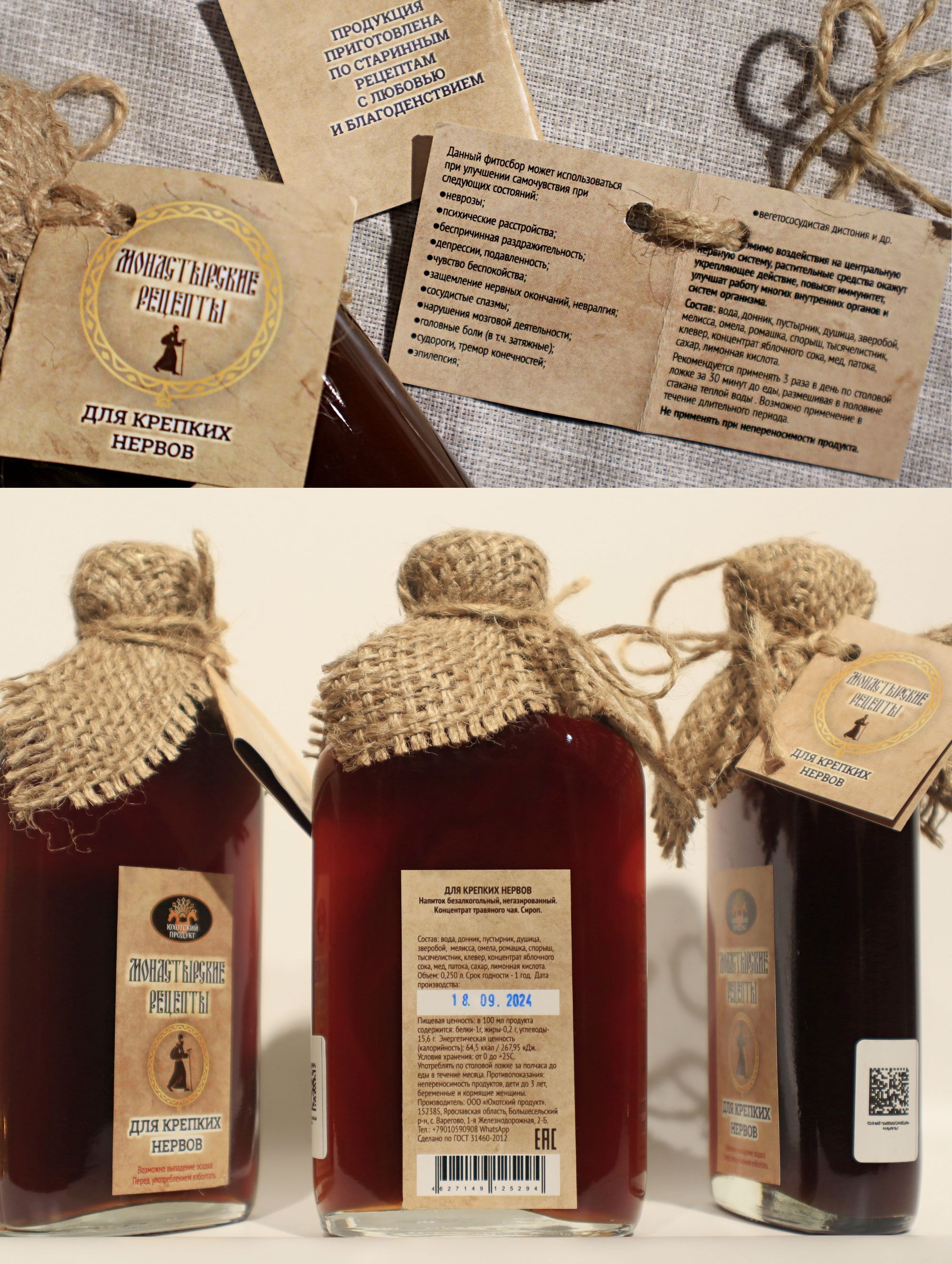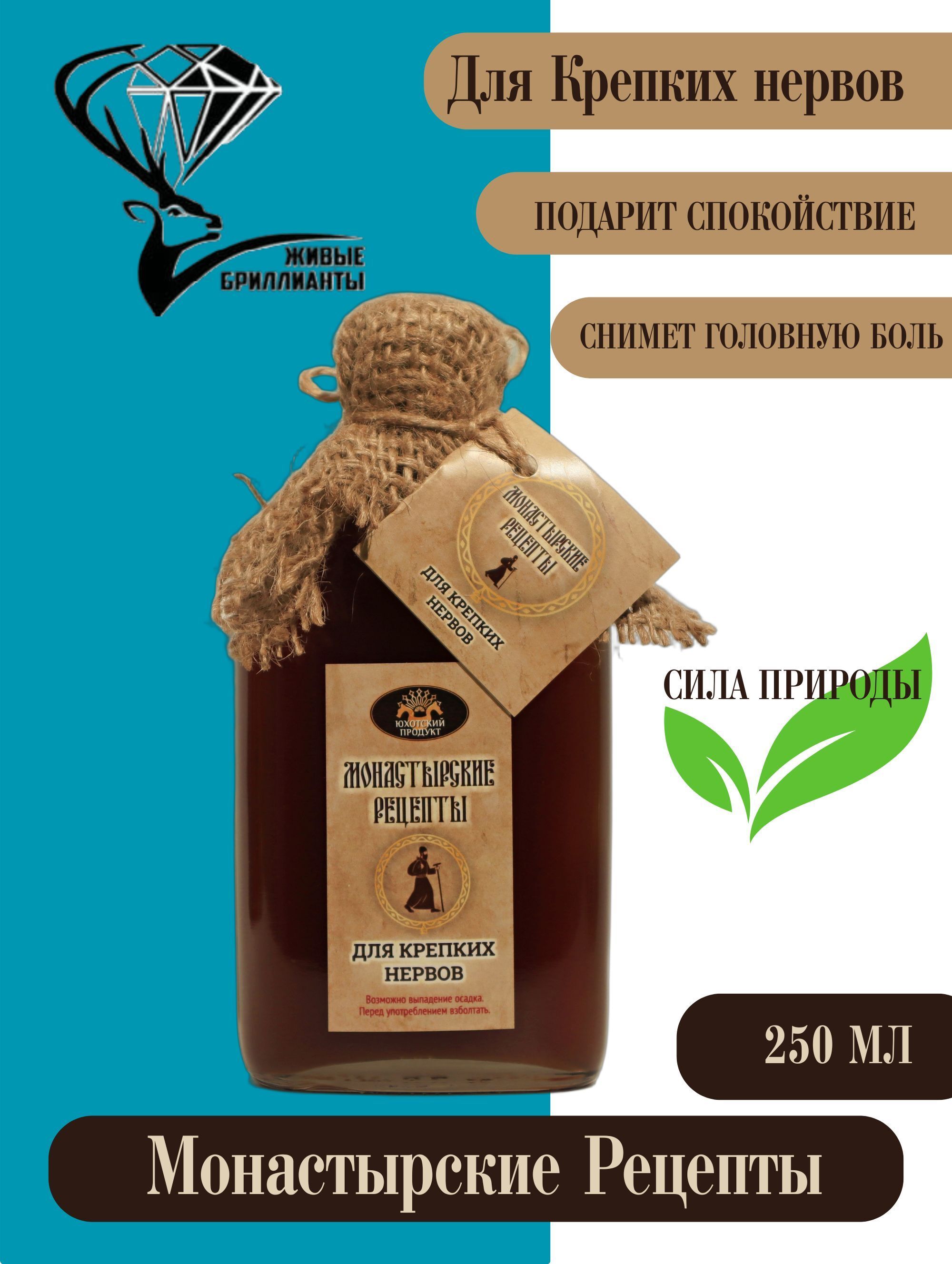 Бальзам для крепких нервов изготовлен на основе традиционных монастырских рецептов, в которых сочетание трав подбиралось для гармонизации эмоционального состояния и укрепления жизненных сил.